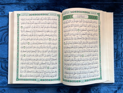 This Qur’an is available in Black, White, Blue, and Red; one colour will be sent at random unless a specific colour is requested by email or WhatsApp at the time of order.