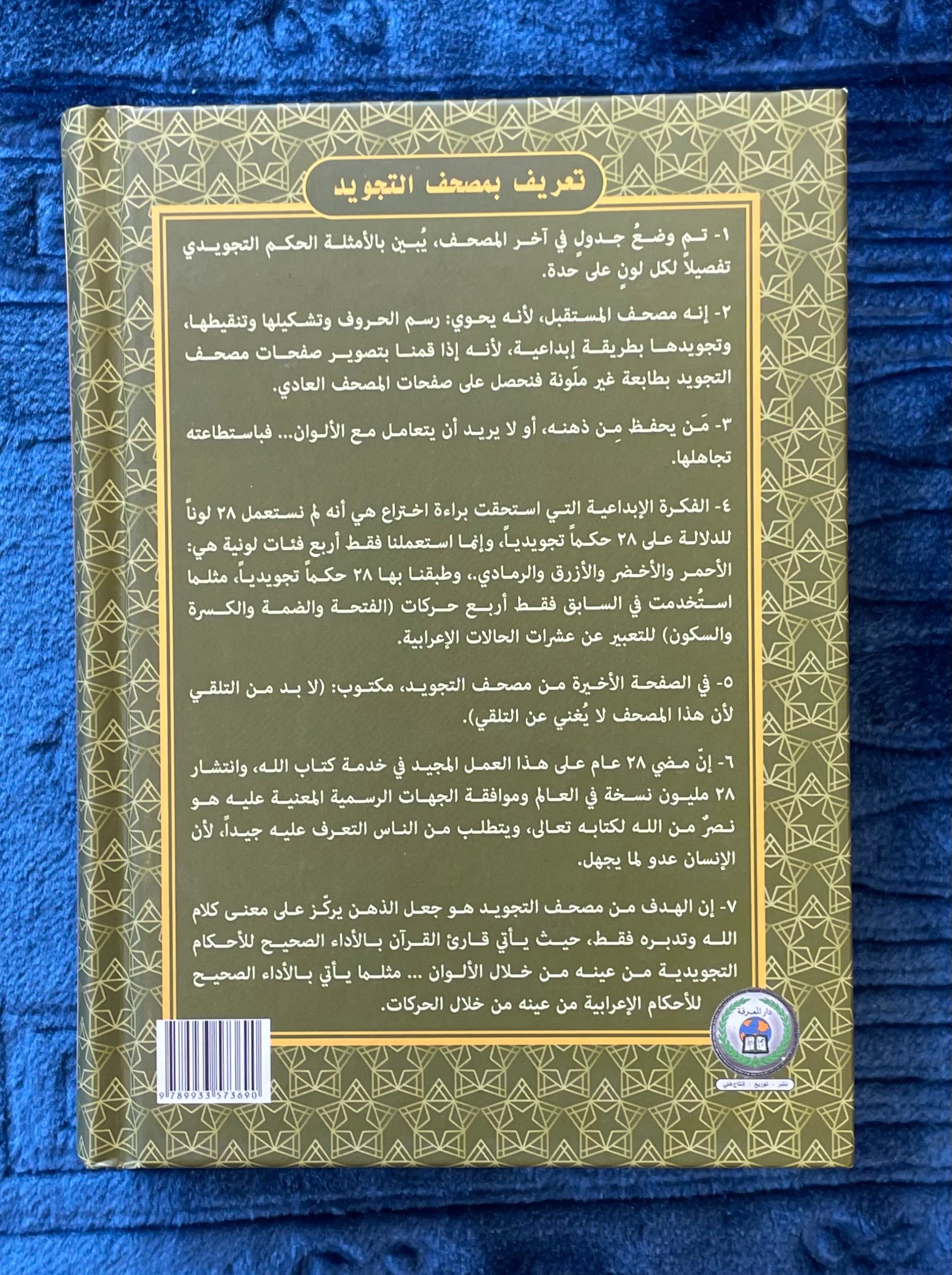 Bound in a durable hardcover with elegant gold Islamic patterns, this Qur’an is suitable for daily recitation, study, madrasahs, mosques, and as a valuable Islamic gift.