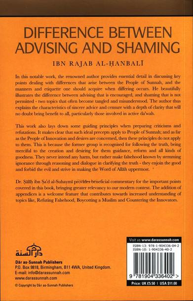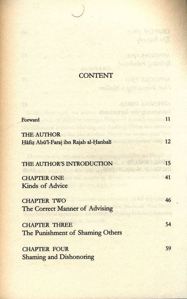 The author thus explains the characteristics of sincere advice and censure with a depth of clarity that will no doubt bring benefit to all, particularly those involved in active da'wah. This work also lays down some guiding principles when preparing criticisms and refutations. It makes clear that such ideal precepts apply to People of Sunnah; and as far as the People of Innovation and desires are concerned, then these principles do not apply to them.