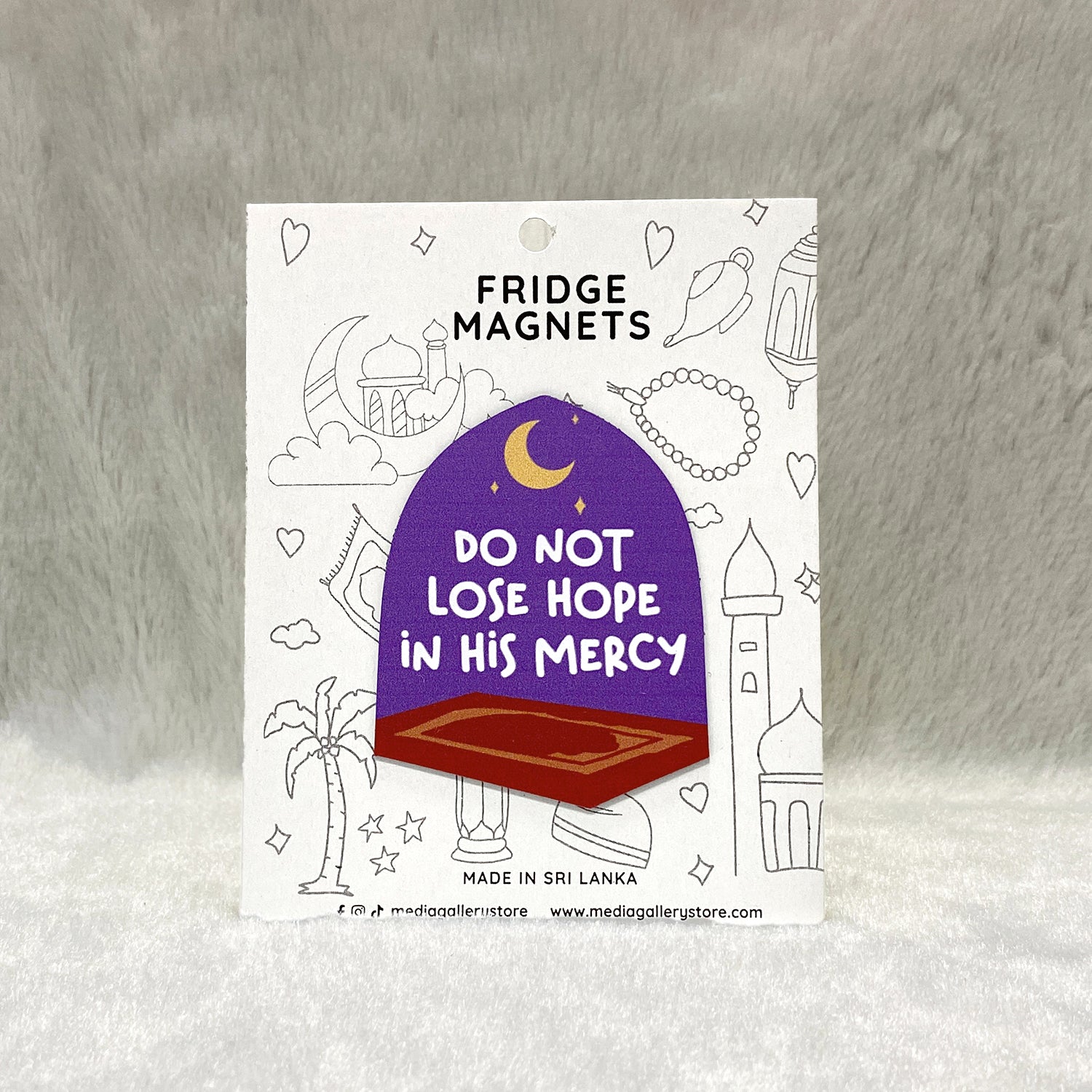 The “Do Not Lose Hope in His Mercy” fridge magnet is a comforting daily reminder of Allah’s boundless mercy and forgiveness. With its soothing design, it encourages you to hold on to hope and trust in Allah’s kindness, no matter how challenging life may feel.