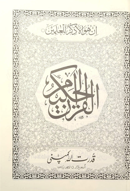 یہ قرآن مجید (اردو رسم الخط، 9 سطریں) معروف ادارے قدرت اللہ اینڈ کمپنی کی شائع کردہ معیاری اشاعت ہے۔