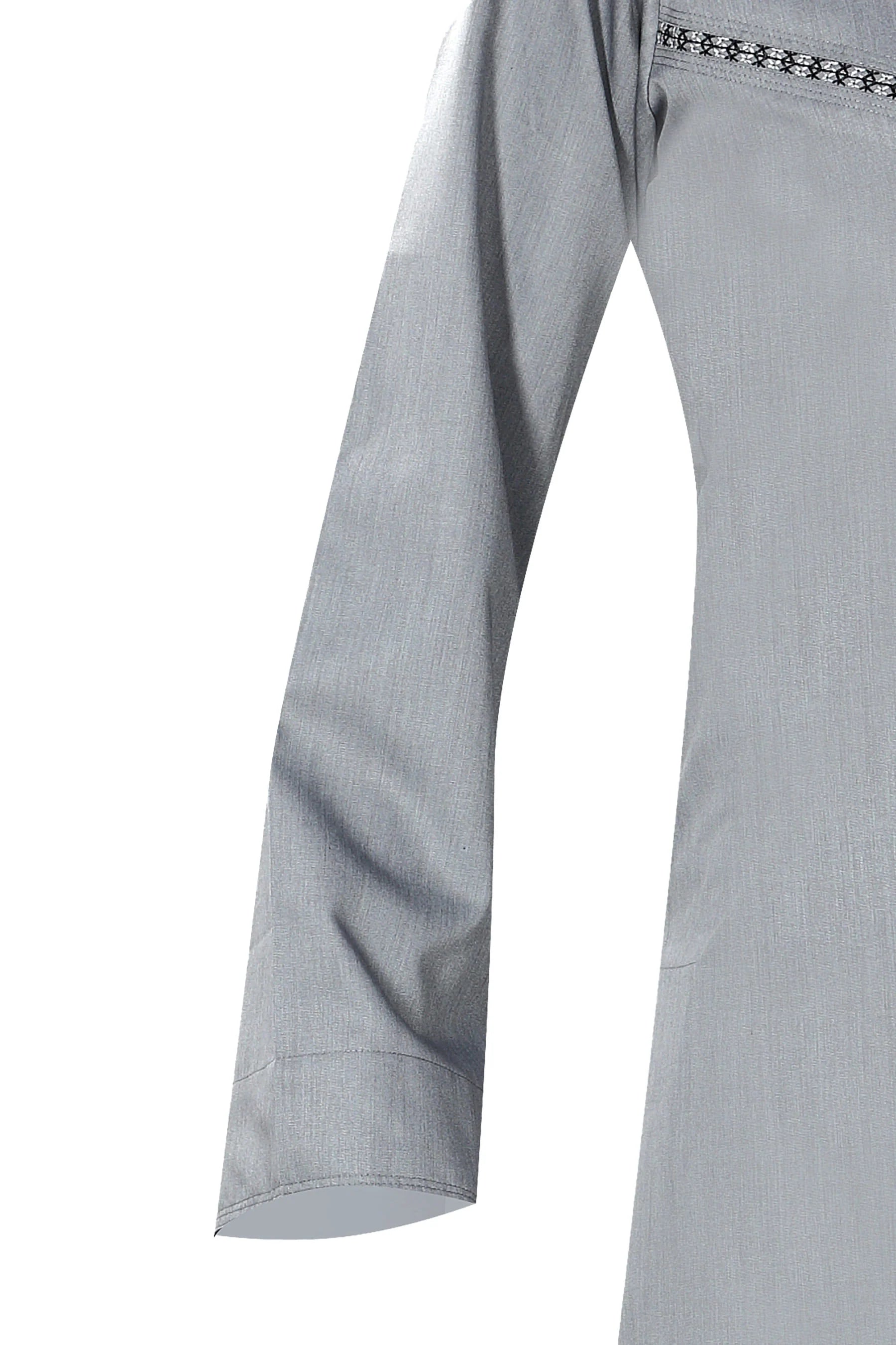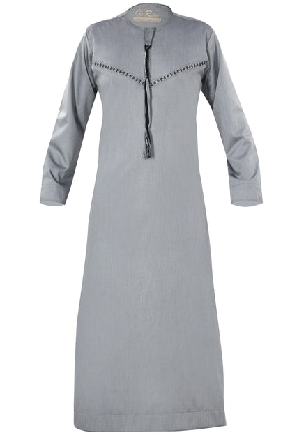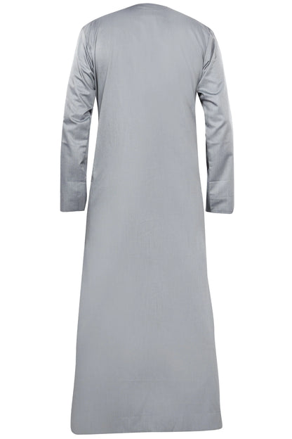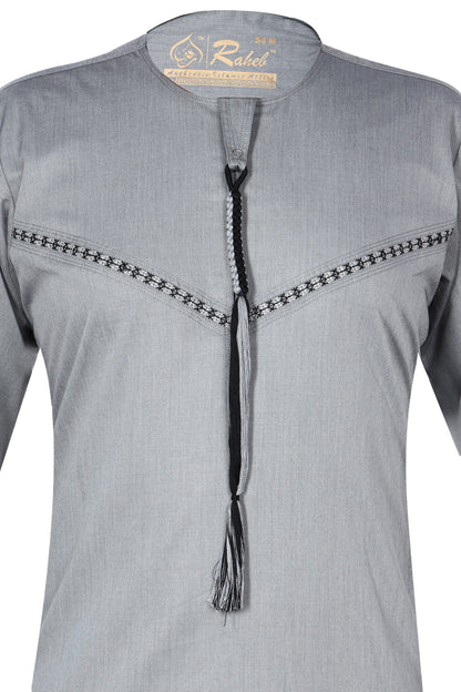 Light Grey Omani-style thobe with detailed embroidery