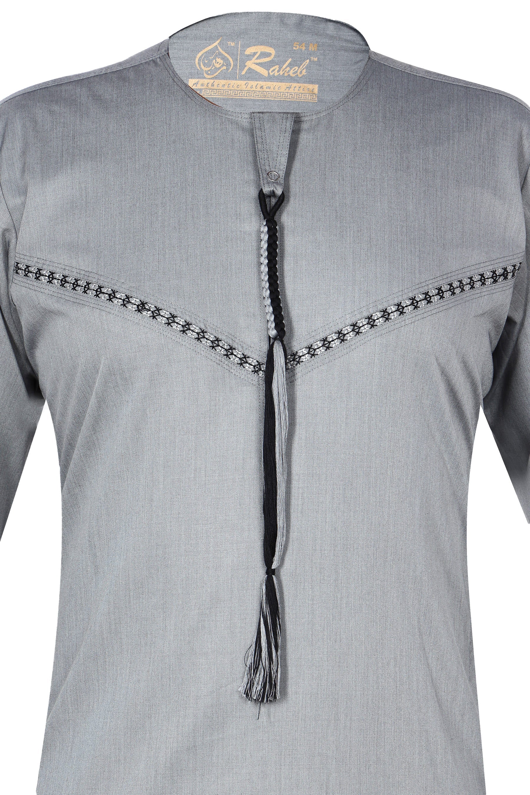 Discover our Light Grey Omani Thobe (Design 4) — a premium embroidered traditional Arabian robe that beautifully blends heritage craftsmanship with modern comfort. Inspired by authentic Omani style thobes, this design features intricate embroidery around the neckline and chest and a classic tassel (furakha) that adds cultural flair and visual sophistication.