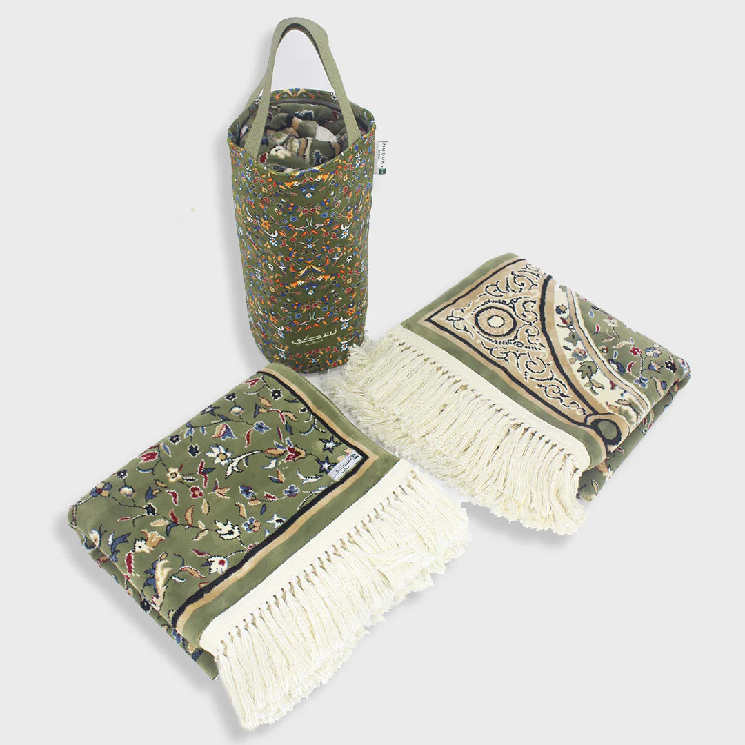 Elevate your prayer experience with the Rawdat Nusuki prayer mat, crafted with soft, velvet-like fabric and intricate patterns inspired by the Rawdah in Madinah. Comes with a matching handbag for easy portability — perfect for home, masjid, or travel.