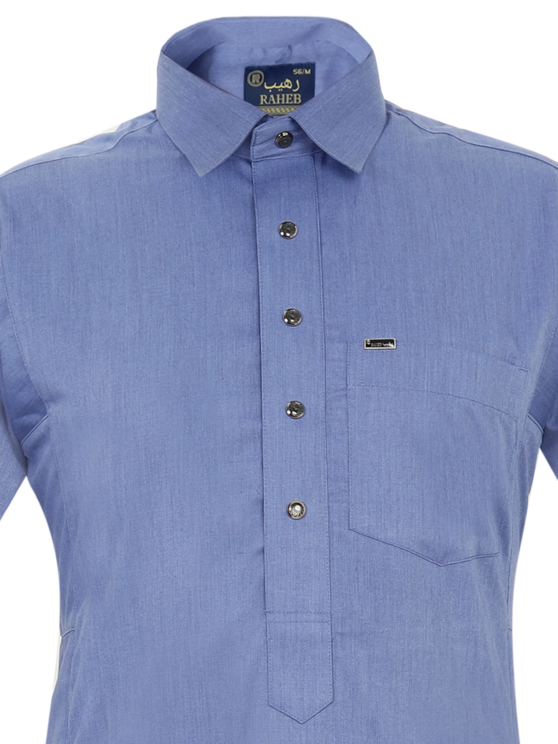 The Saudi Shirt-Style Thobe is a refined take on traditional Arabian menswear, combining the modest elegance of a classic thobe with the clean structure of a modern shirt. Designed for men who prefer a smarter, more tailored look while maintaining traditional Islamic dress, this thobe is both practical and stylish.