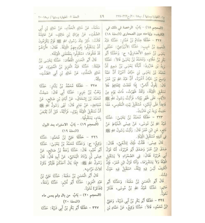 Each hadith is placed in its appropriate chapter (kitâb), organized by topics relevant to Islamic jurisprudence